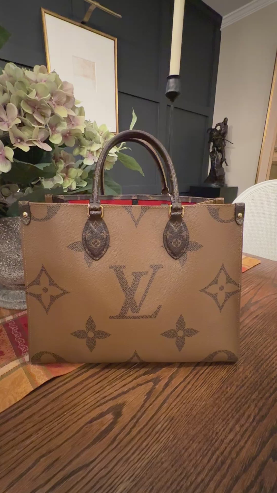The OnTheGo MM in Monogram Reverse is the ultimate power tote — bold, structured, and designed to turn heads. Featuring the iconic dual-tone Monogram Giant canvas, it offers both top handles and long shoulder straps for versatile wear. Spacious enough for work or travel, the OnTheGo MM combines modern luxury with everyday functionality.