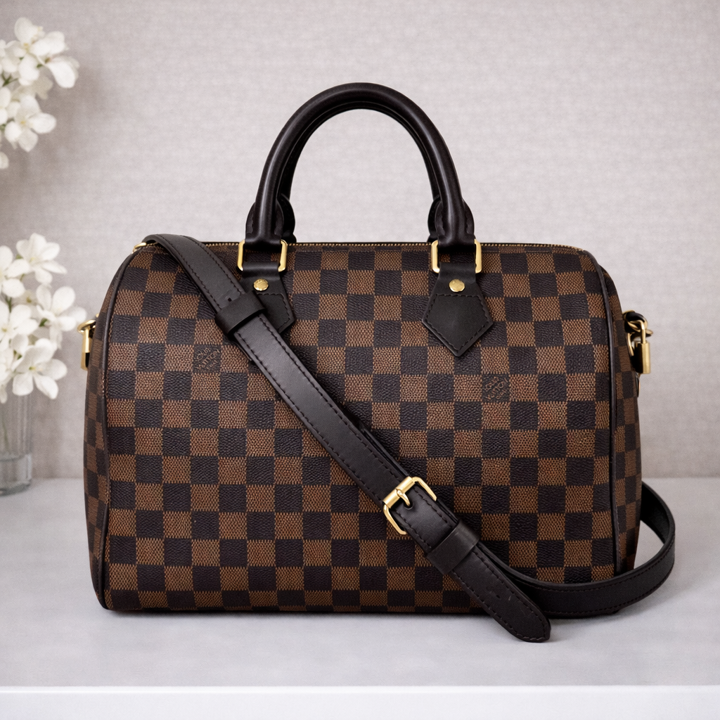 This iconic Speedy 30 Bandouliรจre in Damier Ebene is the perfect everyday luxury bag that transitions effortlessly from casual to polished.