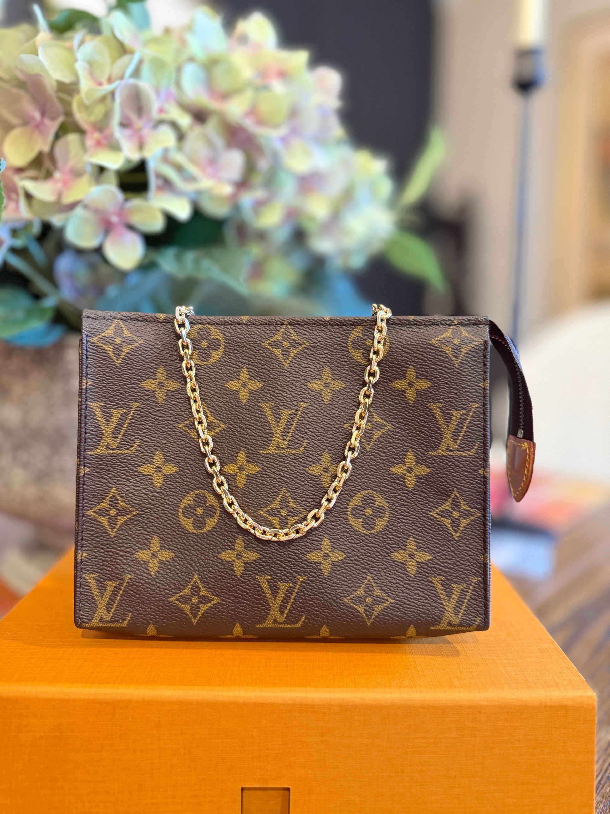 This iconic Monogram Toiletry 19 just got an upgrade ā featuring a custom insert and chic gold chain strap so you can wear it as a crossbody or clutch. ⨠The perfect mix of classic style and modern versatility ā beauty bag by day, statement bag by night!